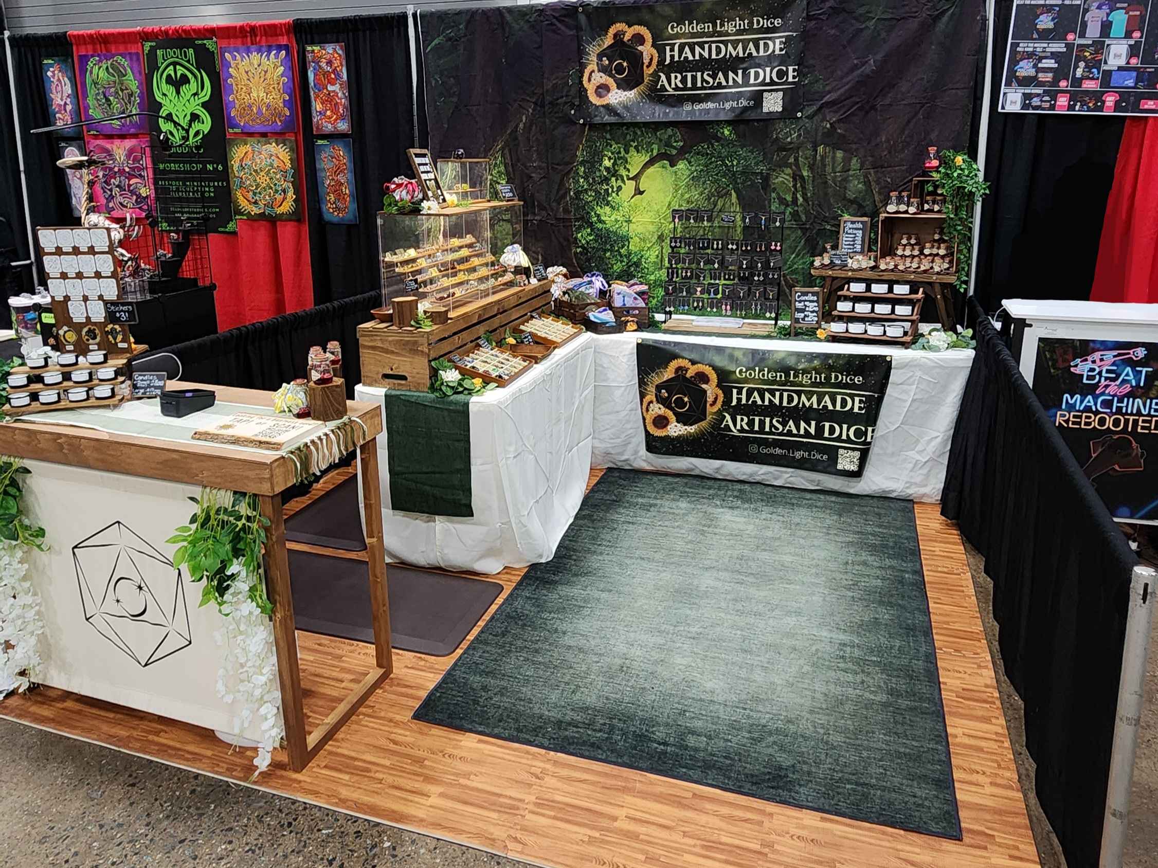 An example of our con booth setups for different floor space. Please pause the slideshow to manually control the flip through pace. Feel free to contact us with any questions about our setup.